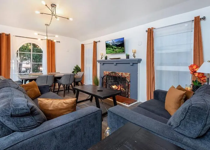 Das Chic And Spacious 3Br Gem In Central La verfügt über Zimmer mit einer Klimaanlage und bietet nützliche Ausstattung, darunter TV und einen Flachbildfernseher mit Satellitenkanälen. Diese Unterkunft ist auch mit einem Sofa ausgestattet. Dieses 250 m² große Apartment hat 3 Schlafzimmer. Es gibt 2 Bäder mit einer getrennten Toilette und einer Dusche und einem Wäschetrockner und Handtüchern.